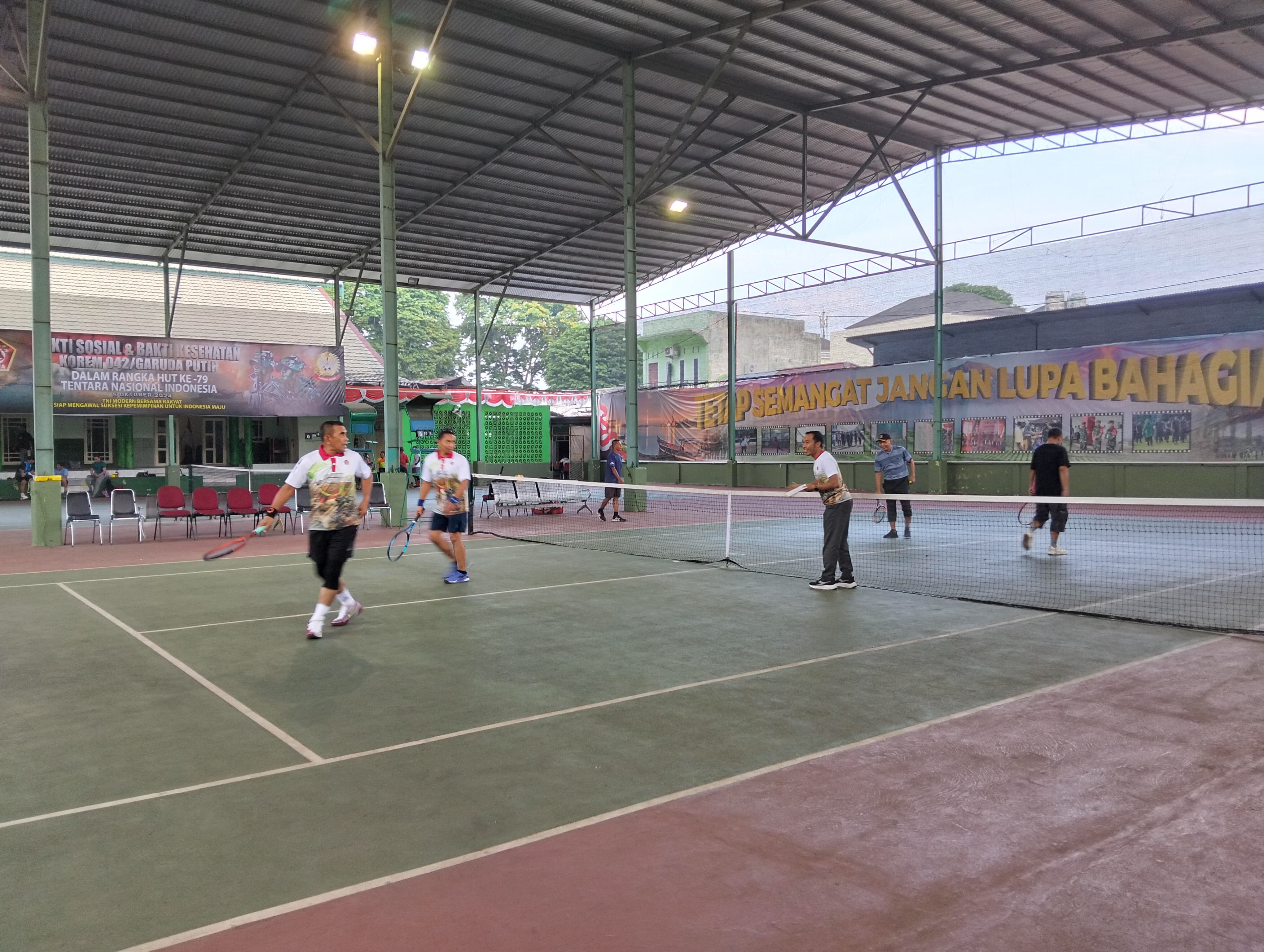 Jambi (WARTANEWS.CO) – Kejuaraan Tenis Lapangan Danrem Cup Tahun 2024 resmi dibuka oleh Danrem 042/Gapu Brigjen TNI Rachmad, S.I.P., dalam rangka memeriahkan HUT ke-79 TNI, bertempat di Lapangan Tenis Indoor Korem 042/Gapu, Kota Jambi, dengan diikuti sekitar 100 peserta yang antusias untuk berkompetisi, Jumat (25 Oktober 2024).
