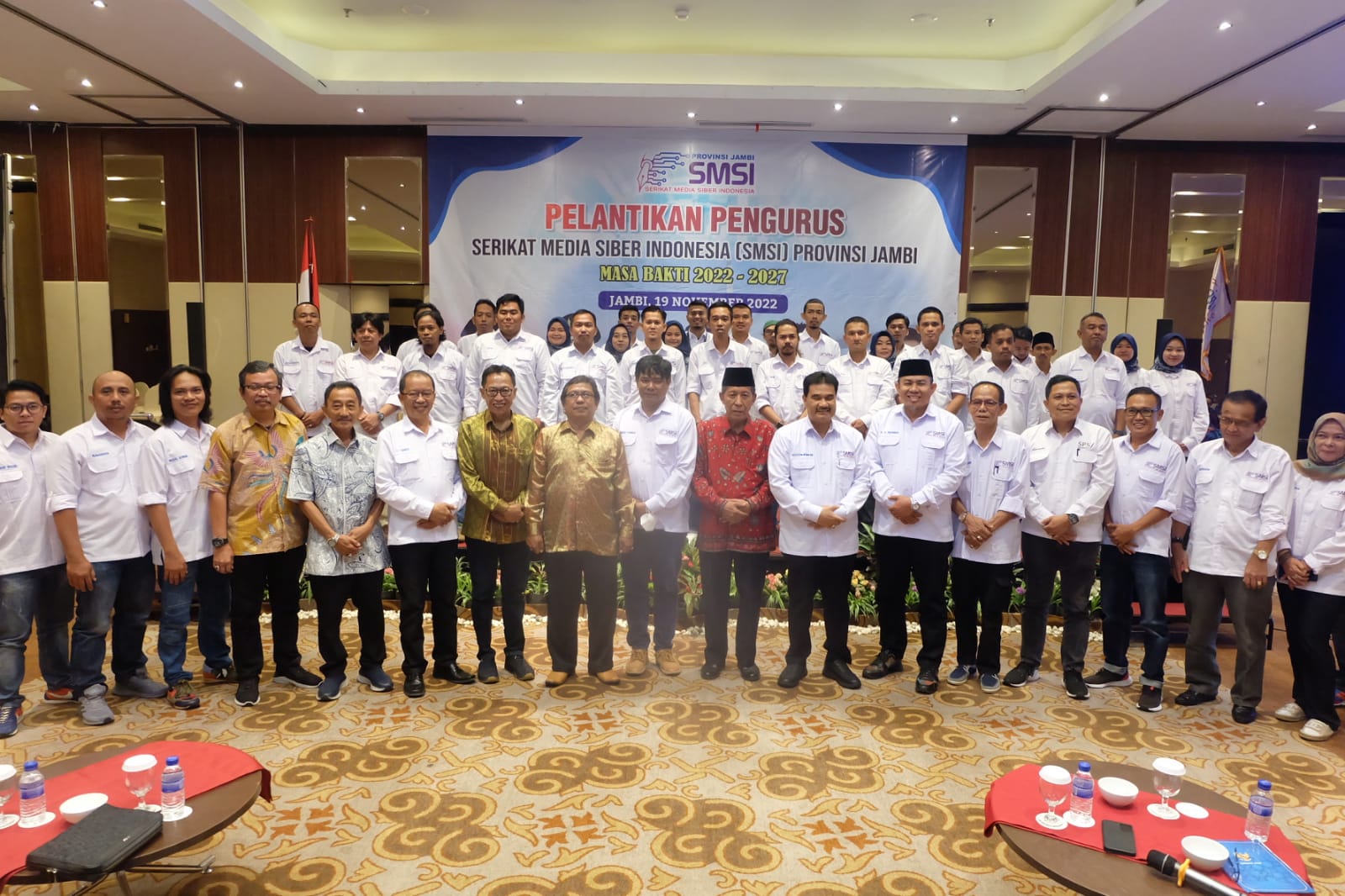 JAMBI (WARTANEWS.CO) – Pengurus Serikat Media Siber Indonesia (SMSI) Provinsi Jambi periode 2022 -2027 resmi dilantik oleh wakil ketua Umum SMSI Pusat Yono Hartono, di Aston Hotel, Sabtu (19/11/2022).