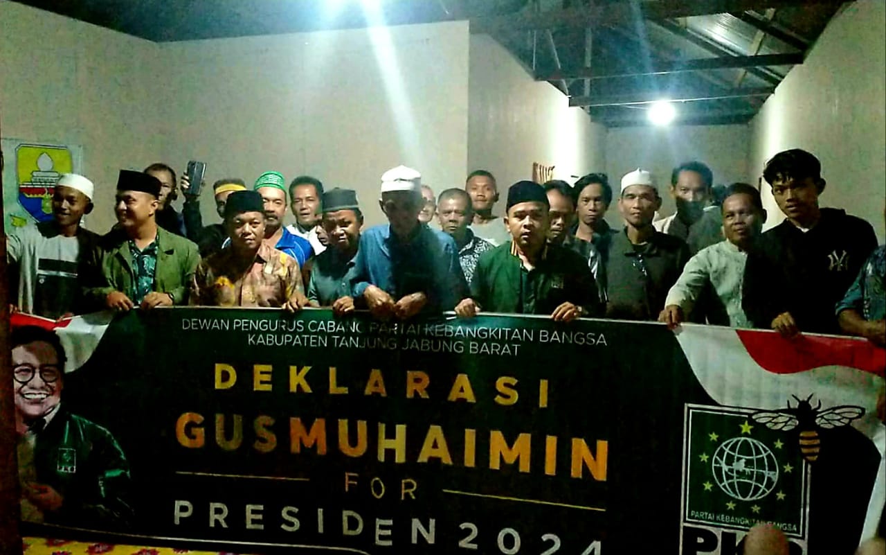 BRAM ITAM (WARTANEWS.CO) – Ketua Fraksi III DPRD Tanjung Jabung Barat, M Zaki, ST yang juga Ketua Dewan Pimpinan Cabang (DPC) PKB Kabupaten Tanjung Jabung Barat mendeklarasikan Muhaimin Iskandar sebagai Calon Presiden (Capres) 2024 yang dilaksanakan di Bram Itam, Selasa (15/03).