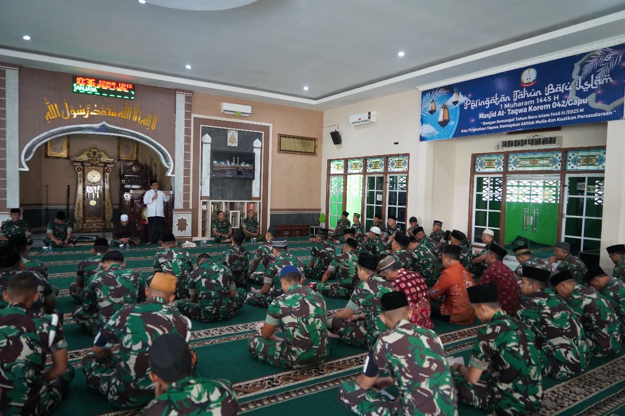 Jambi (WARTANEWS.CO) – Korem 042/Gapu menggelar peringatan tahun baru Islam 1445Hijriah / 2023 Masehi yang dihadiri oleh Kasrem 042/Gapu, Para Kasi Korem Para Pa,Ba,Ta dan Pns jajaran Korem 042/Gapu, Para Dan Ka satbalak,Persit Kartika Chandra Kirana Koorcab rem 042 PD II/Sriwijaya bertempat di Masjid AT Taqwa Korem 042/Gapu Jl.Jendral Urip Sumoharjo,Kel Sungai Putri, Kec.Danau sipin,kota jambi,Jumat,21/7/2023.