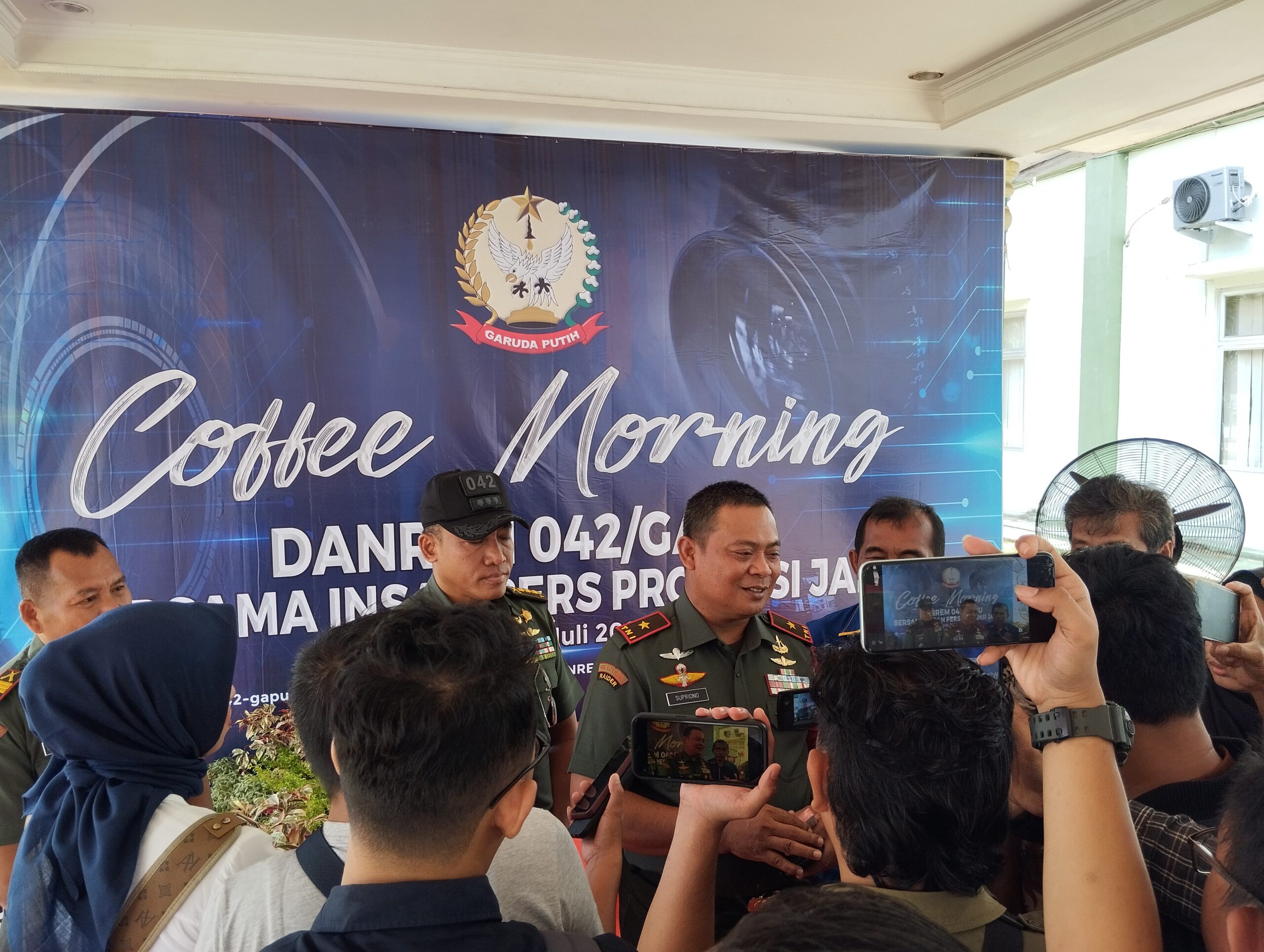 Hal tersebut dikatakan Danrem 042/Gapu Brigjen TNI Supriono saat menjamu Insan Pers di Jambi dalam jamuan Cofee Morning, Senin (31/07). Danrem meminta doa kepada semua yang hadir, semoga Korem Jambi dapat terpilih menjadi salah satu Korem yang akan Naik status menjadi Kodam. Agar status ini untuk percepatan koordinasi dan pengambilan keputusan.