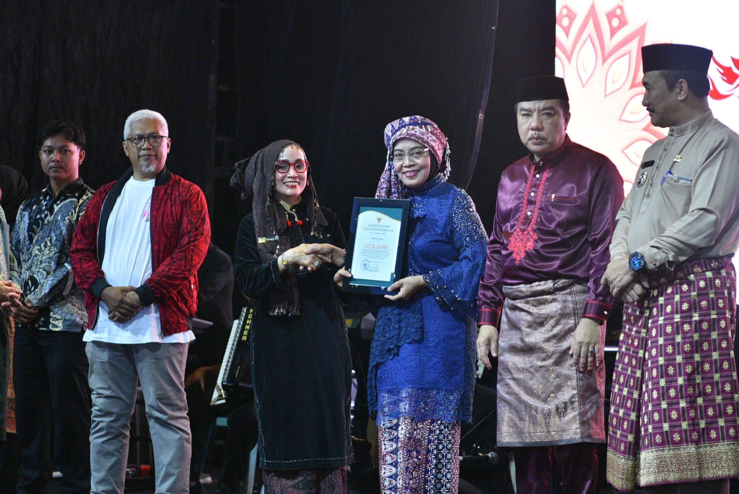 Pada acara pembukaan yang berlangsung meriah itu, juga diberikan apresiasi bagi penggiat seni budaya dan pariwisata termasuk pemerintah daerah dalam provinsi Jambi. Pemerintah kota Jambi menjadi salah satu penerima penghargaan yaitu sebagai pemerintah daerah di provinsi Jambi dengan kunjungan wisatawan terbanyak.