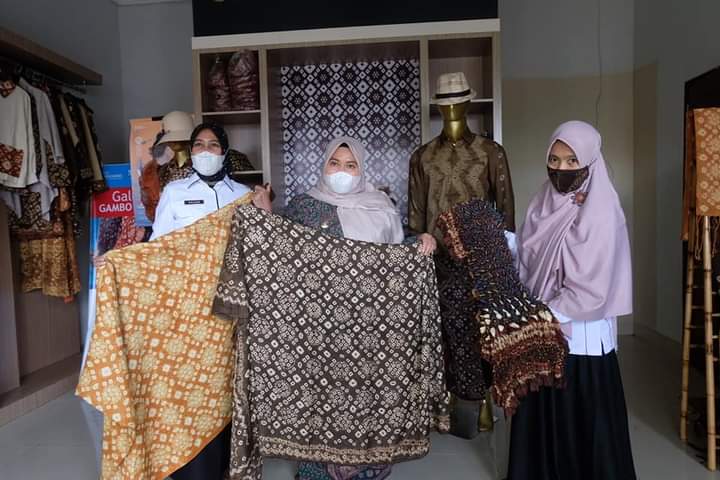 Bupati dan rombongan di dampingi Kepala Disperindag Muba Azizah,S.Sos, MT berkesempatan mengunjungi tempat produk tenun Jumputan Gambo Muda hasil produksi Eco Fashion khas kabupaten Muba yang ramah lingkungan.