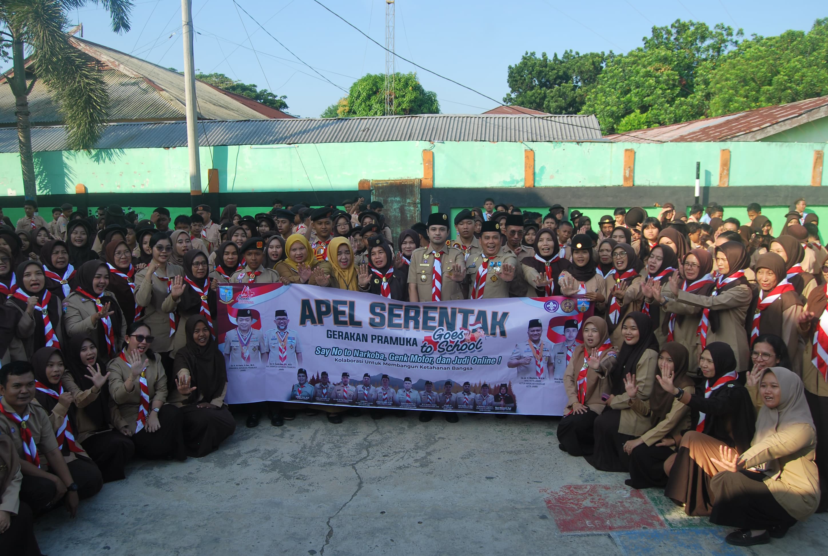 Dipusatkan di SMP Negeri 1 Kota Jambi, Apel Serentak Gerakan Pramuka Goes To School dengan tajuk “Say No To Narkoba, Geng Motor, dan Judi Online” dipimpin langsung Wali Kota Jambi yang juga selaku Ketua Mabicab Kwarcab Kota Jambi Dr.dr.H. Maulana, M.K.M,.