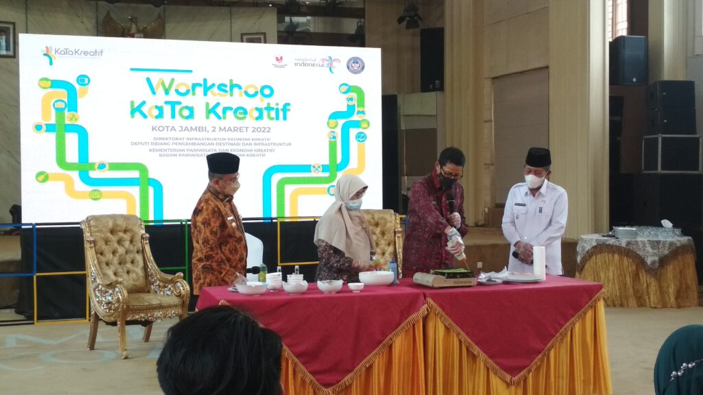Pelaksanaan Workshop Kota Kreatif yang menyajikan beberapa hidangan sektor kuliner khas Jambi, Menteri Sandiaga Uno mengapresiasi hal tersebut. Dimana dalam dua tahun pandemi UMKM sangat membantu dalam membuka lapangan pekerjaan, sehingga dapat mendongkrak pergerakan perekonomian.