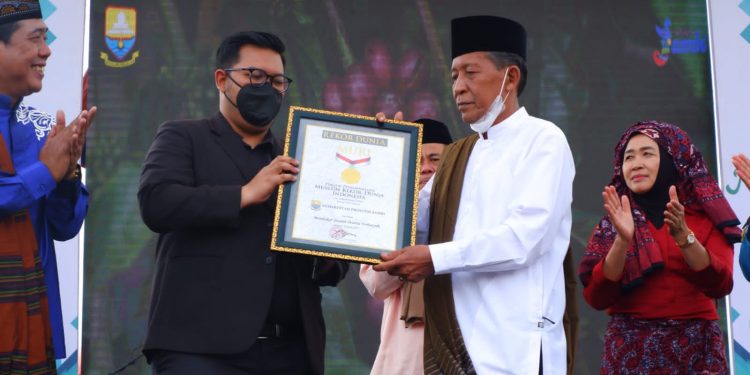 Plakat rekor dan buku Muri tersebut di terima langsung oleh Wakil Gubernur Jambi H. Abdullah Sani yang diserahkan oleh perwakilan Muri Indonesia Andre Purwandono, Jum’at (24/06).