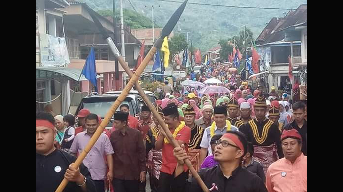 KERINCI (WARTANEWS.CO) – Pasangan Calon (Paslon) Bupati Kerinci nomor urut 1 Monadi-Edison diarak keliling Kampung oleh masyarakat 7 Desa Pulau tengah kecamatan Keliling Danau, Kabupaten Kerinci, Minggu (8/4). Ini merupakan sebuah pertanda bagi masyarakat 7 Desa Pulau tengah siap untuk memberikan dukungan dan memenangkan Monadi-Edison pada Pilkada 2018.