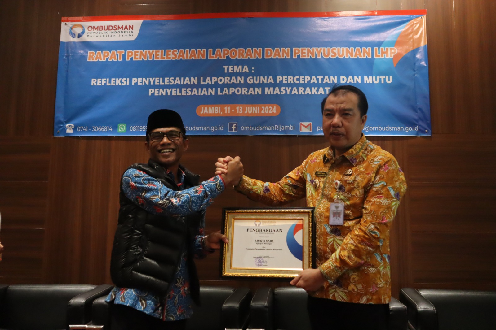 “Pada kesempatan ini kami menyampaikan apresiasi kepada Pj Bupati Merangin dan juga instansi lainnya yang sudah tanggap dan mendukung percepatan penyelesaian laporan oleh Ombudsman Jambi,” sebut Saiful pada pembukaan Rapat Penyelesaian Laporan dan Penyusunan LAHP, Selasa, 11 Juni 2024.