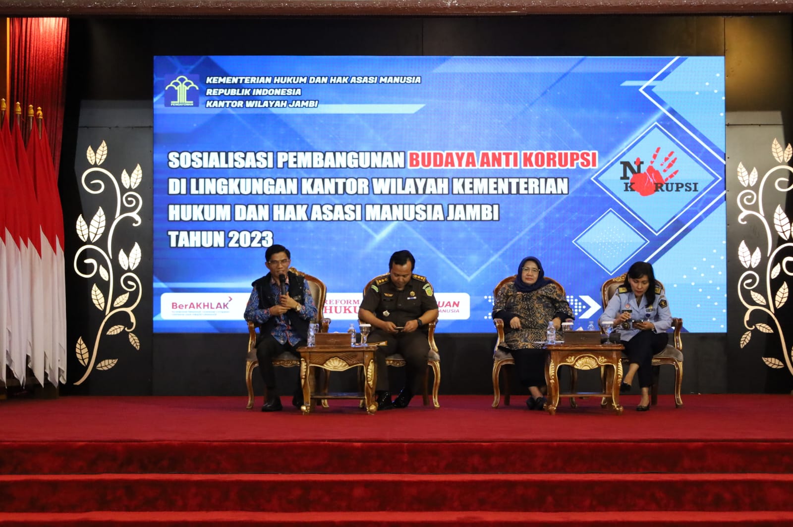 JAMBI (WARTANEWS.CO) – Kepala Perwakilan Ombudsman Republik Indonesia Provinsi Jambi, Saiful Roswandi, menghadiri dan menjadi pemateri pada kegiatan Sosialisasi Budaya Antikorupsi di lingkungan Kantor Wilayah Kementerian Hukum dan Hak Asasi Manusia. Ia juga menjadi saksi dalam penandatanganan komitmen bersama Kanwil Kemenkumham penguatan Pembangunan Zona Integritas Menuju Wilayah Bebas Korupsi (WBK) dan Wilayah Birokrasi Bersih Melayani (WBBM).