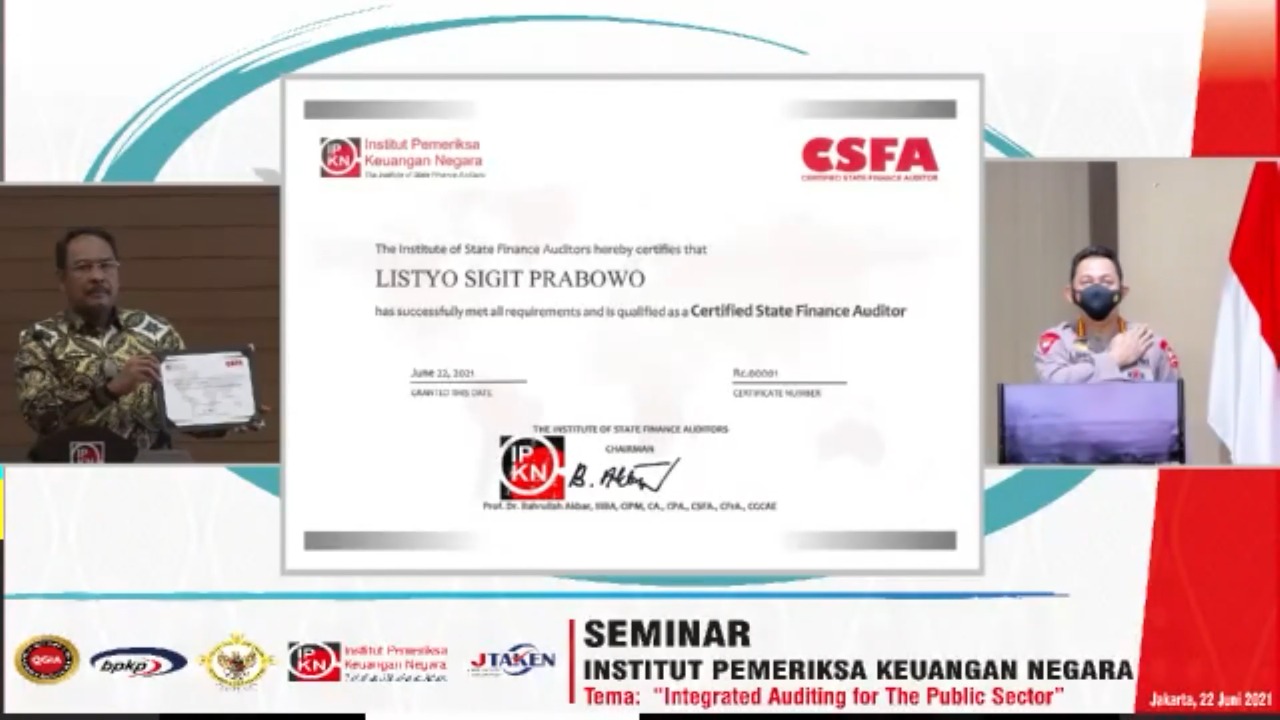 JAKARTA (WARTANEWS.CO) – Kapolri Jenderal Listyo Sigit Prabowo memberikan orasi ilmiah di Seminar Institut Pemeriksa Keuangan Negara (IPKN), secara virtual, Jakarta, Selasa (22/6/2021).