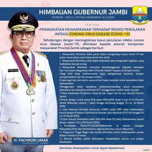 Gubernur Jambi Keluarkan Himbauan Tingkatkan Kewaspadaan Terhadap Covid-19