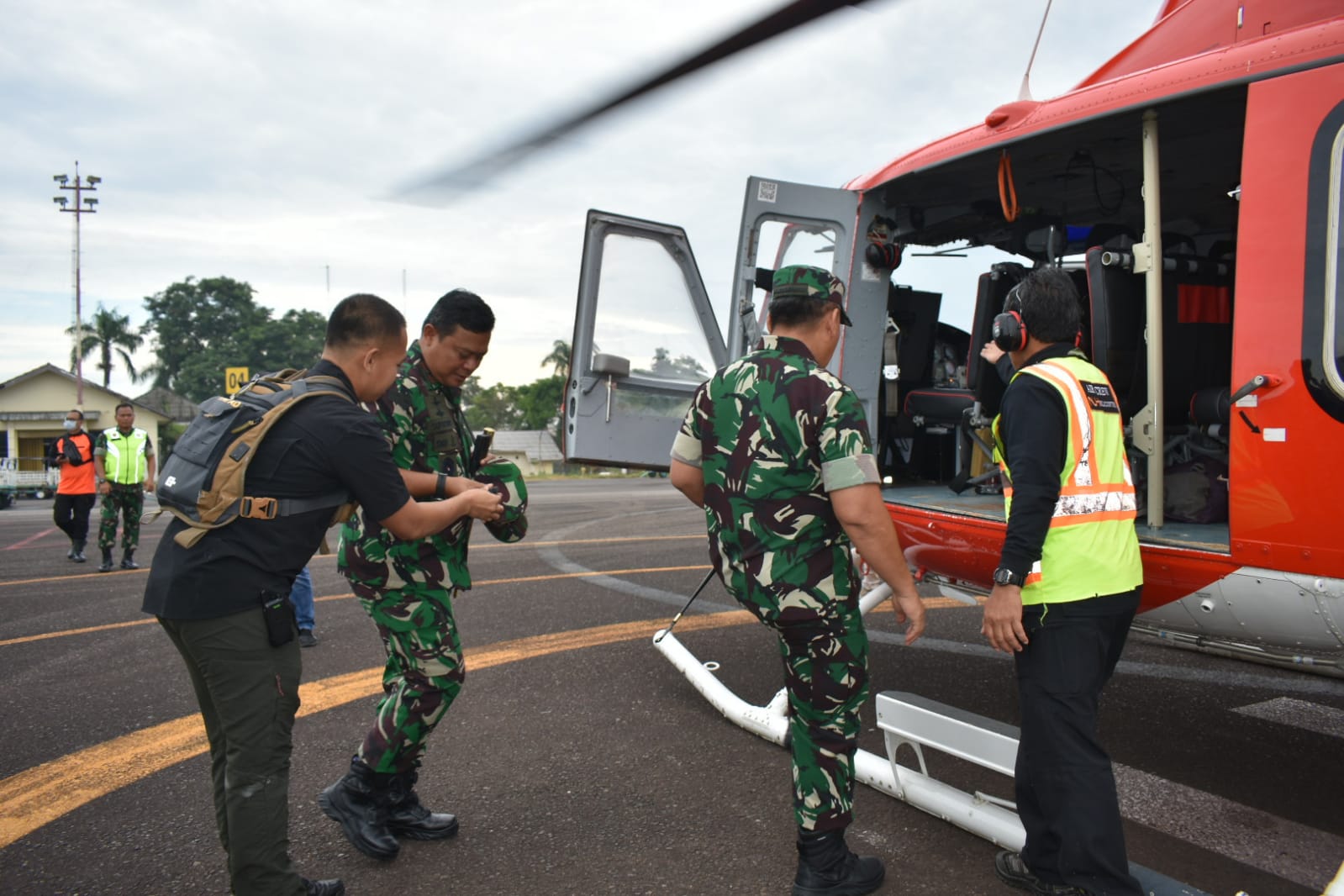 Usai dari Posko, Pangdam II/Sriwijaya Mayjen TNI Hilman Hadi didampingi Wakil Gubernur Jambi Abdullah Sani, Kapolda Jambi Irjen Pol Rusdi Hartono, Danrem 042/Gapu Brigjen TNI Supriono dan Ketua DPRD Prov Jambi Edi Purwanto melaksanakan Patroli Udara Karhutla Prov Jambi. (*)