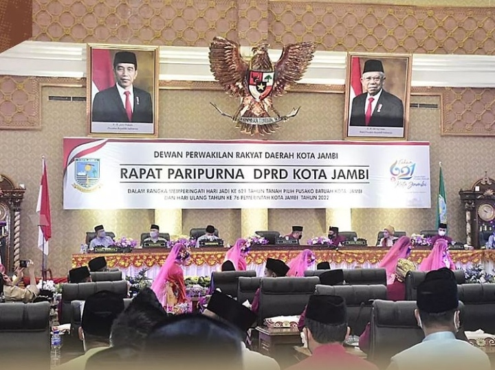 Jambi (WARTANEWS.CO) – Bertempat di Swarna Bumi Gedung DPRD Kota Jambi, di selenggarakan Rapat Paripurna dalam rangka hari jadi Tanah Pilih Pusako Betuah Kota Jambi ke 621 tahun 2022 dan Hari Ulang Tahun (HUT) Kota Jambi ke 76.