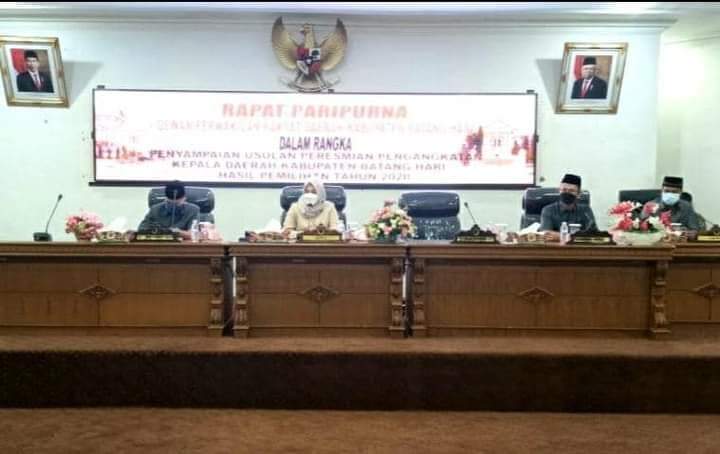 BATANGHARI (WARTANEWS.CO) – Dewan Perwakilan Rakyat Daerah (DPRD) Kabupaten Batanghari menggelar rapat paripurna dalam rangka penyampaian usulan peresmian pengangkatan Kepala Daerah Batanghari hasil Pilkada tahun 2020, Selasa (26/1).