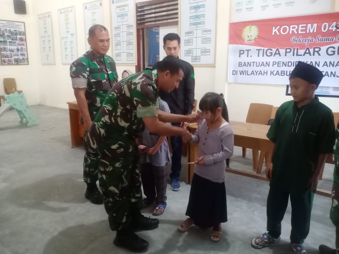 Kali ini Korem 042/Gapu bekerjasama dengan PT. TPGB (Tiga Pilar Gunung Batu) menggelar Bantuan Pendidikan bagi Anak-anak Yatim Piatu di wilayah Kabupaten Tanjung Jabung Barat.
