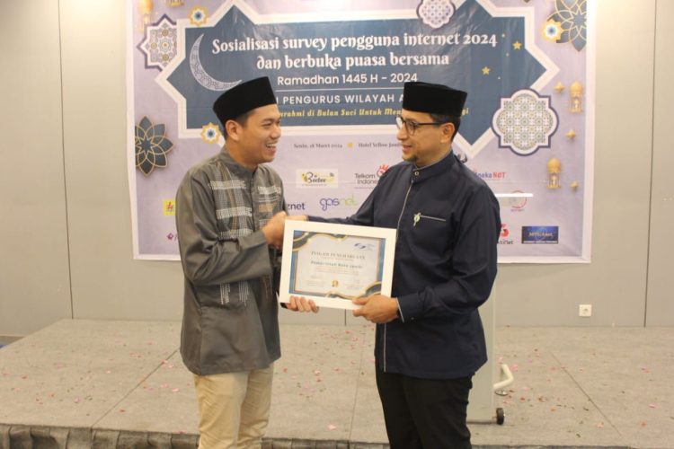 Dalam acara penganugerahan penghargaan yang dirangkai dengan buka puasa bersama itu juga presentasikan Hasil Survey Penetrasi Internet Provinsi Jambi Tahun 2024 oleh Sekretaris Umum Pengurus Pusat APJII Zulfadli Syam.