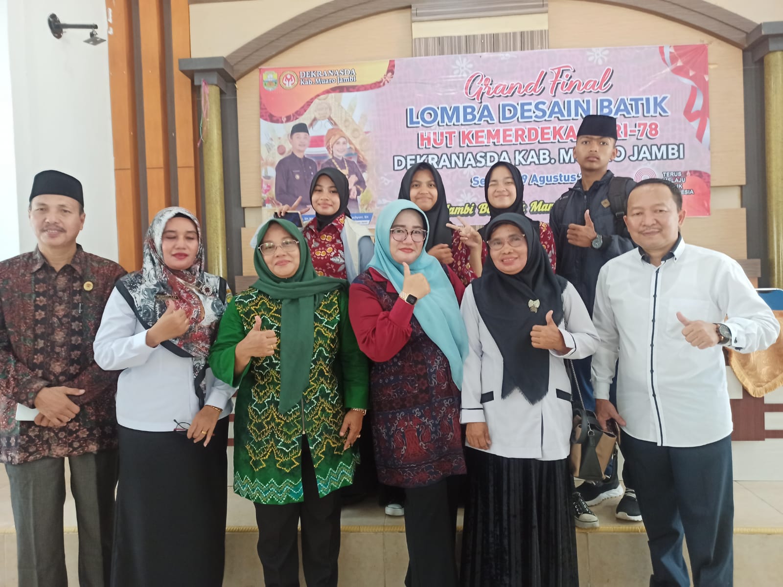 “Lomba desain Batik motif Muaro Jambi dalam rangka Dirgahayu RI ke-78 tahun 2023 ini, adalah yang pertama diselenggarakan oleh Dekranasda Kabupaten Muaro Jambi. Untuk ide lomba ini pun juga digagas langsung oleh Ketua Dekranasda Kabupaten Muaro Jambi saat ini, ibu Faradillah Zahara Bachyuni,SH. Sehingga semua hasil karya peserta lomba desain Batik motif Muaro Jambi yang sudah ditetapkan sebagai nominasi sehingga berhak untuk mengikuti lomba Grand Final dalam rangka HUT Kemerdekaan RI ke-78 tahun 2023, tentu saja menjadi hak milik Dekranasda Kabupaten Muaro Jambi,” papar Supriati Budhi.
