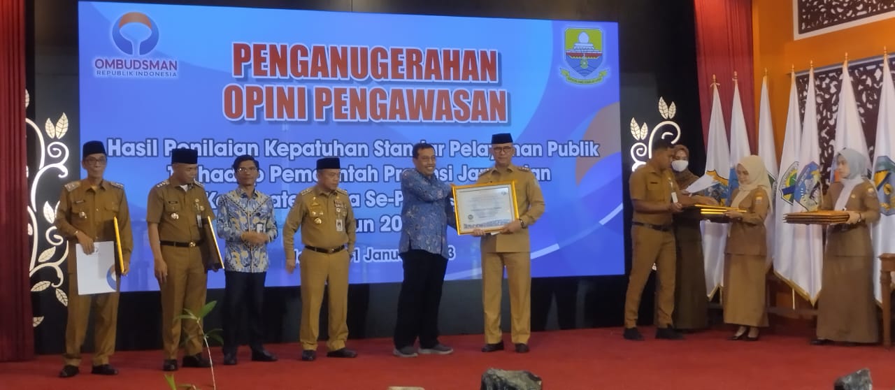 Penyerahan Penganugrahan Opini Pengawasan Hasil Penilaian Kepatuhan Standar Pelayanan Publik di Provinsi Jambi ini secara langsung diberikan oleh Ketua Ombudsman RI, Mokhammad Najih. Kegiatan ini merupakan puncak dari pelaksanan Penilaian Pelayanan Publik Ombudsman 2022.