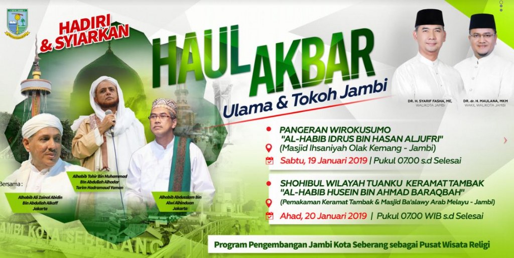 Peringatan Haul akan berlangsung sabtu besok (19/01/2019), acara ini akan diselenggarakan di Mesjkd Al-ihsaniyah Seberang Kota Jambi.