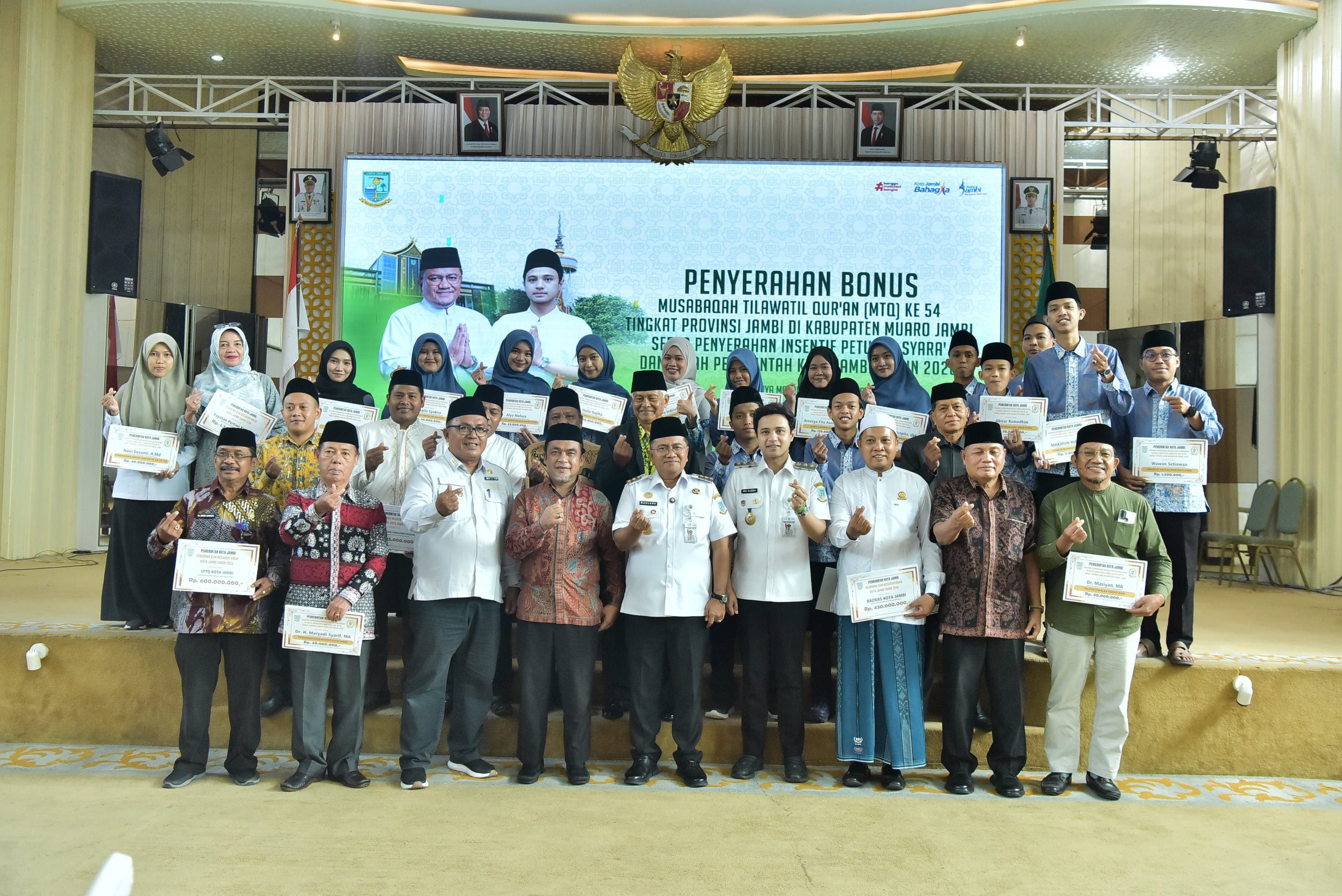 Penyerahan tersebut dilakukan dalam rangkaian kegiatan pemberian bonus secara simbolis terhadap para Kafilah Musabaqoh Tilawatil Quran (MTQ) Kota Jambi yang telah berjuang pada pelaksanaan MTQ ke 54 tingkat Provinsi Jambi di Kabupaten Muaro Jambi. Dimana, peraih juara 1 dan 2 akan diberangkatkan ibada umroh. Penyerahan tersebut diserahkan secara langsung oleh Wali Kota Dr. dr. H. Maulana, M.K.M, didampingi Wakil Wali Kota Diza Hazra Aljosha, S.E., M.A,.