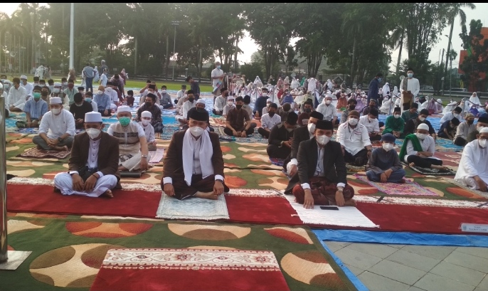 Jambi (WARTANEWS.CO) – Dalam rangka Hari Raya Idul Adha 1442 H tahun 2021, Walikota Jambi Dr.H.Syarif Fasha serta Wakil Wali Kota Dr. dr.H.Maulana, melaksanakan solat bersama ribuan masyarakat Kota Jambi, bertempat di Lapangan Kantor Walikota, Selasa (20/07).
