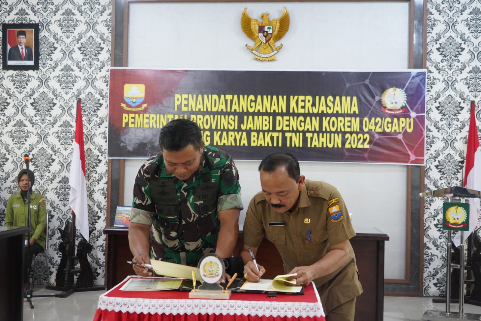 Hal tersebut diungkapkan Kapenrem 042/Gapu Mayor Inf RM Hatta dalam keterangan tertulisnya. Adapun isi MoU ini dilakukan yaitu Pelaksanaan Karya Bhakti TNI Pembangunan jalan alternatif Simpang Karmeo – Kilangan sepanjang 43,7 KM di Kabupaten Batanghari.