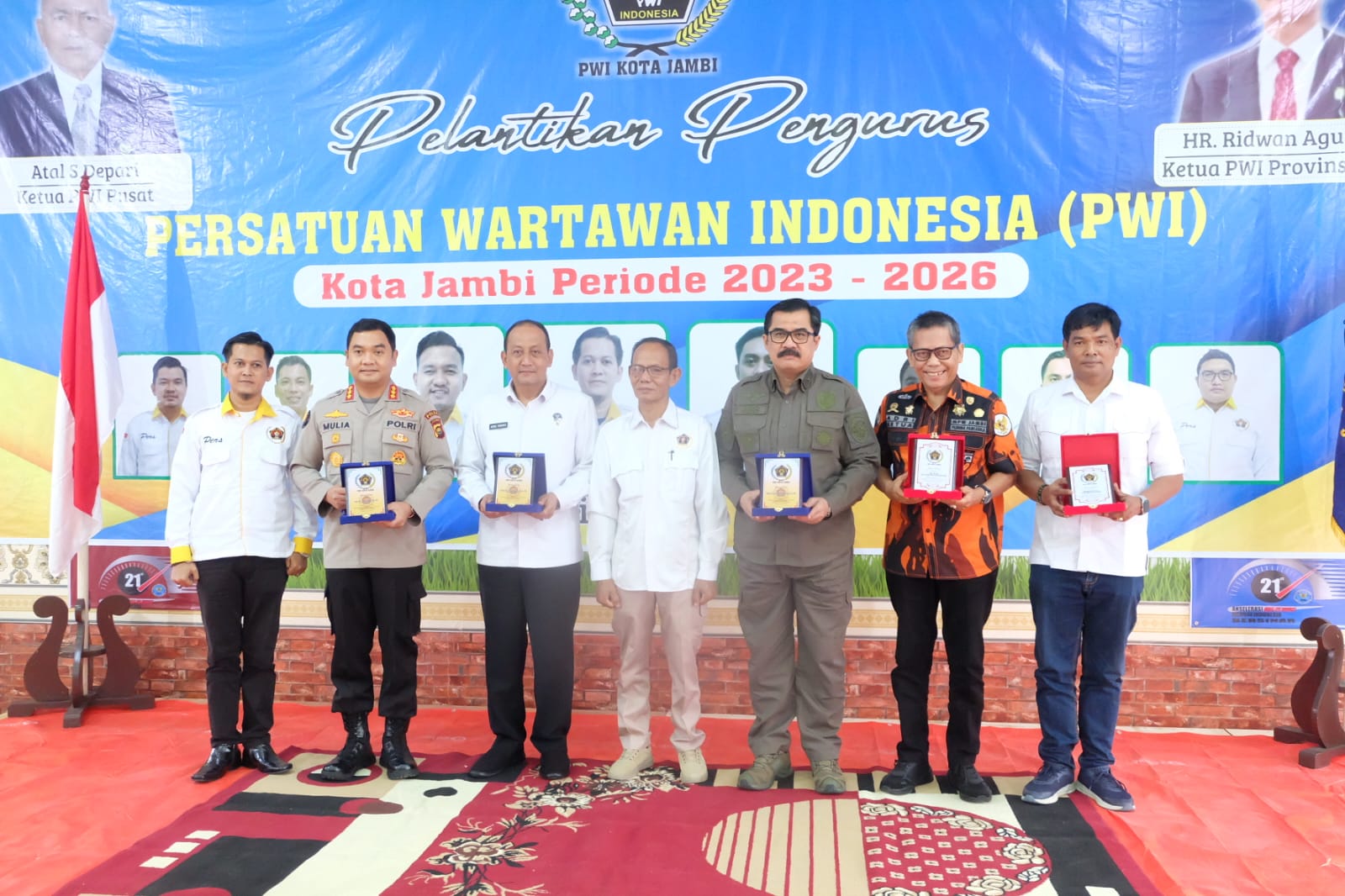 Seusai acara pelantikan, dilanjutkan dengan penyerahan tanda penghargaan berupa plakat oleh Ketua PWI Kota Jambi Irwansyah A. kepada PWI Jambi HR.Riduan Agus Depati, dan selanjutnya Ketua PWI Jambi juga menyerahkan plakat kepada Kapolda Jambi, yang diwakili Kabid Humas Kombes Pol Mulia, S.I.K.