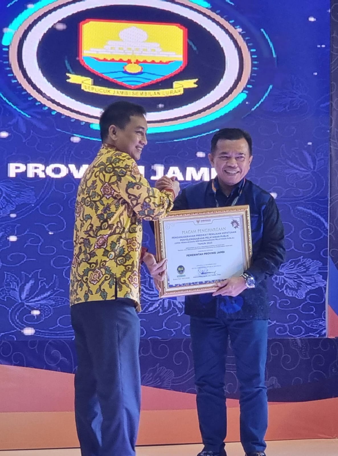 JAMBI (WARTANEWS.CO) – Pemerintah Provinsi Jambi kembali meraih penghargaan dari Ombudsman Republik Indonesia di tahun ini. Dari 34 provinsi yang dinilai Pelayanan Publiknya di tahun 2023, Pemprov Jambi masih bertahan pada peringkat 10 terbaik. Atas prestasi tersebut, Gubernur Jambi diundang sebagai Penerima Predikat Kepatuhan Standar Pelayanan Publik pekan lalu di Hotel Aryaduta Menteng, Jakarta.