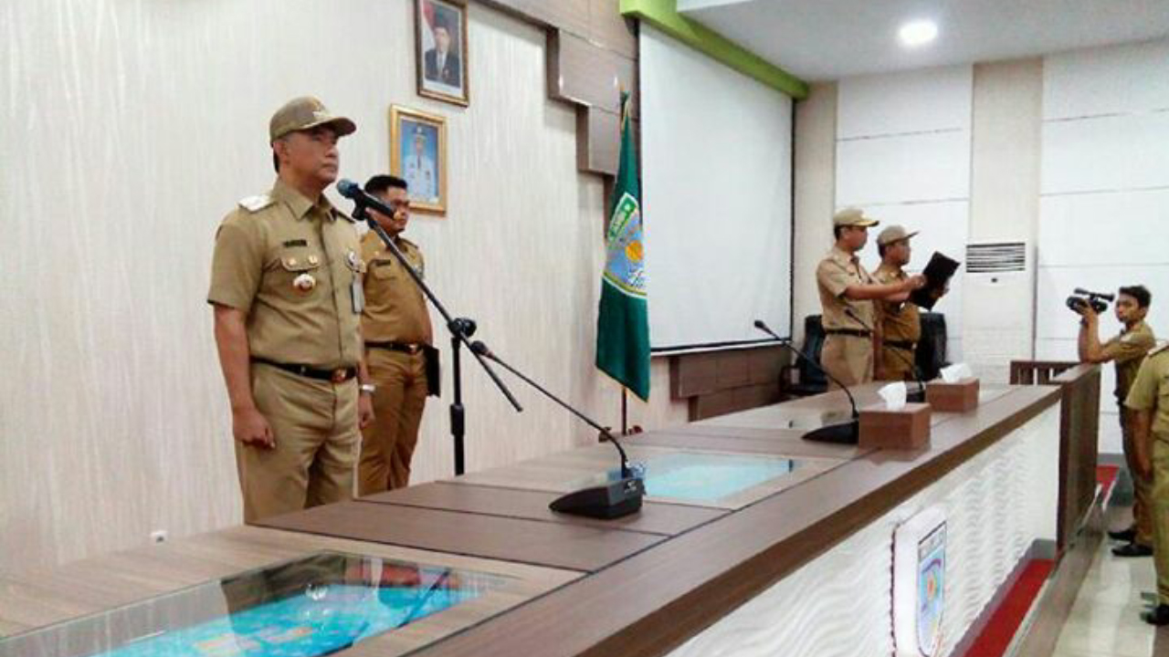 JAMBI – Apel peningkatan disiplin ASN yang semula akan dilaksanakan di lapangan utama kantor Walikota, berpindah ke ruang pola dikarenakan hujan deras yang mengguyur balaikota.