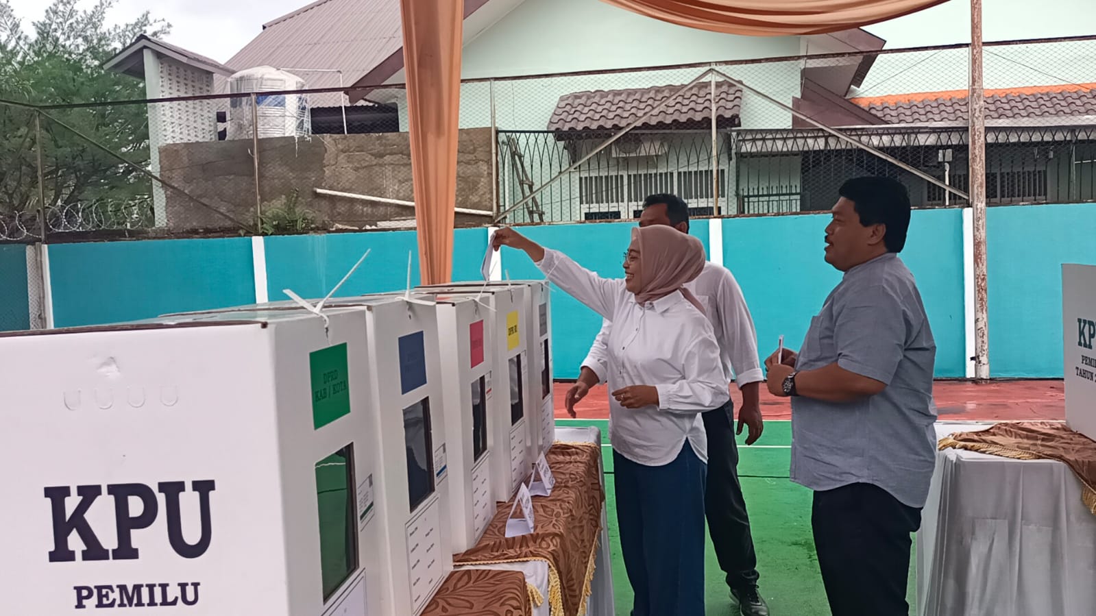 Jambi (WARTANEWS.CO) – Penjabat Wali Kota Jambi Sri Purwaningsih mengunakan hak pilihnya di pemilu legislatif dan pilpres 2024, Rabu (14/2/2024).