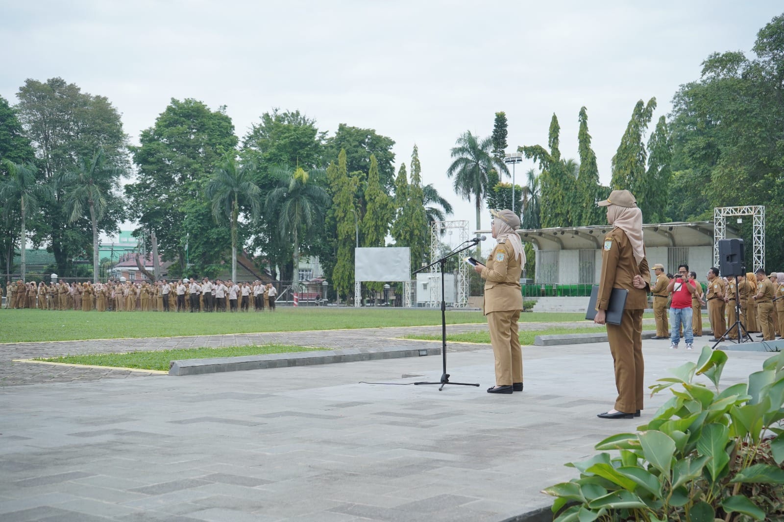 Apel yang berlangsung di lapangan utama Balaikota Jambi itu diikuti jajaran pejabat eselon dan staf ASN di lingkup Pemerintah Kota Jambi. Tampak hadir Sekda A Ridwan, Staf Ahli Wali Kota, Asisten Sekda, Kepala OPD, Camat hingga Lurah se-Kota Jambi.