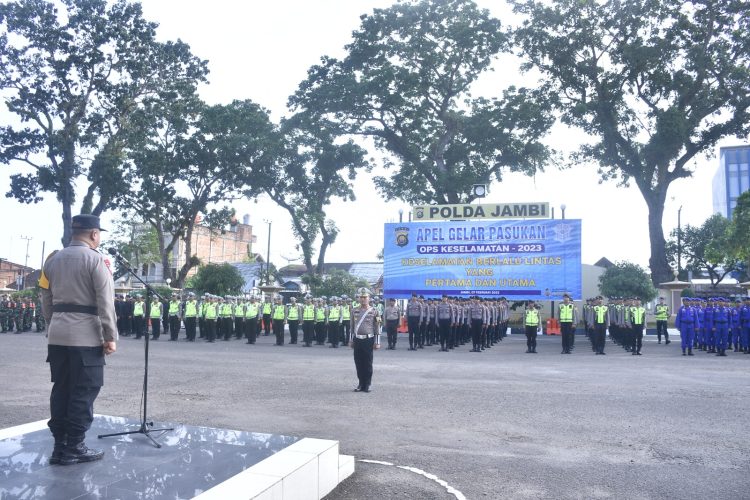 Wakapolda Jambi Brigjen Pol Yudawan Roswinarso langsung memimpin apel gelar pasukan Operasi Keselamatan 2023 ini.