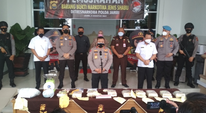 Mewakilkan Kapolda Jambi Irjen Pol A Rachmad Wibowo, Wakapolda Brigjen Pol Yudawan mengatakan, pemusnahan 13,58 kg sabu ini merupakan hasil dari 8 ungkap kasus dengan 9 orang tersangka secara keseluruhan.