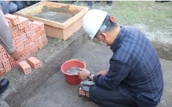 Pembangunan ditandai dengan peletakan batu pertama yang dilakukan oleh Kapolda Jambi Irjen Pol Albertus Rachmad Wibowo. Serta diikuti oleh Wali Kota Jambi Dr.H.Syarif Fasha,ME., Sabtu (02/04) sore.