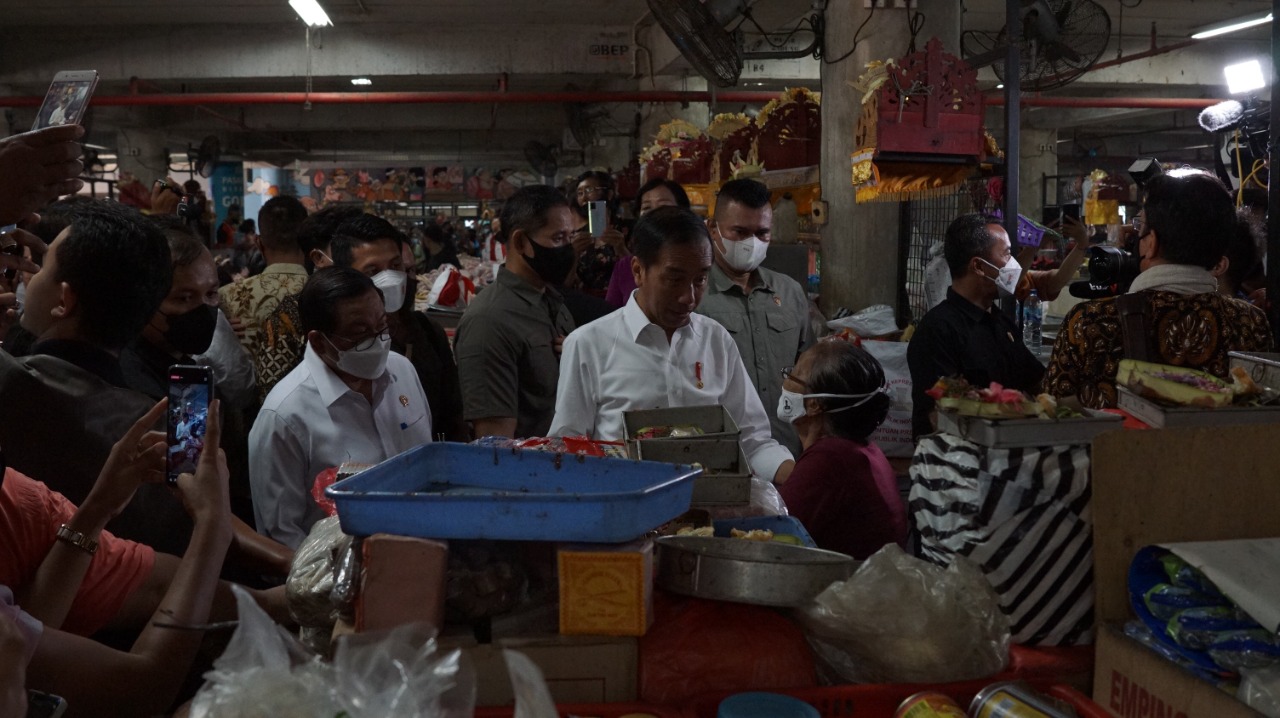“Saya berdialog langsung dengan pedagang, saya mendengar secara langsung (kondisi harga barang di pasar) dari para pedagang. Kondisinya seperti apa, tantangannya apa, termasuk efek dari terjadinya inflasi”, tutur Presiden.