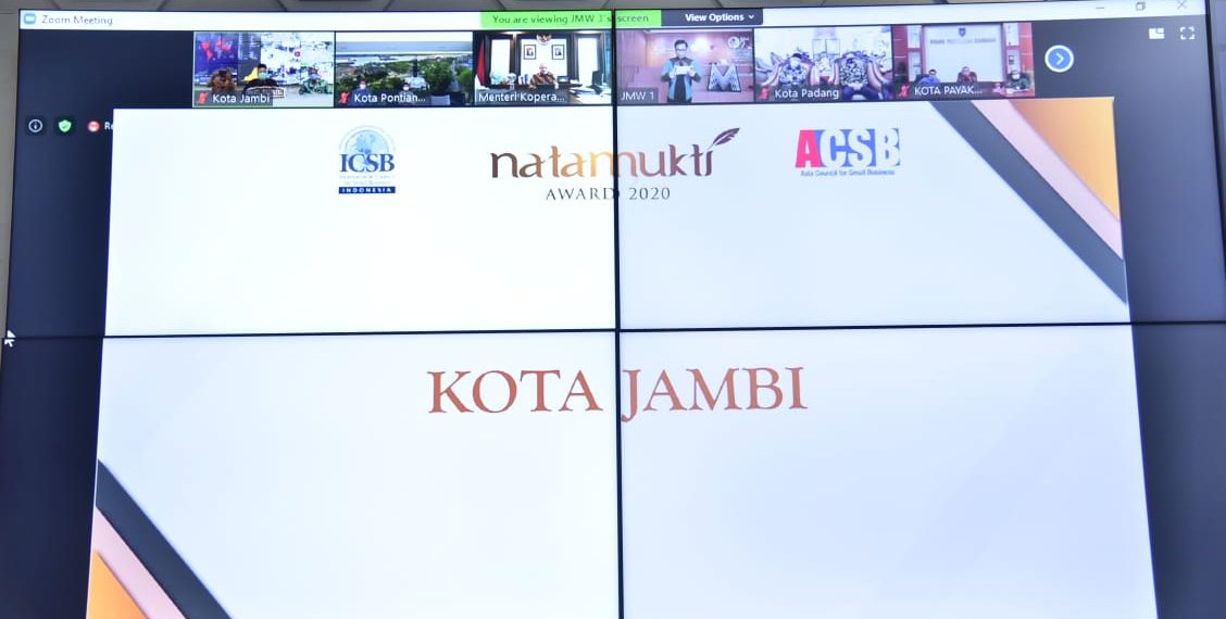 Penghargaan tersebut diserahkan langsung secara virtual dari Jakarta oleh Menteri Koperasi dan UKM Republik Indonesia, Teten Masduki, bersama President of ICSB (International Council for Small Business), yang juga merupakan CEO Mark Plus Inc., Hermawan Kartajaya kepada Wakil Wali Kota Jambi Dr. dr. H. Maulana, MKM, yang berada di Ruang Jambi City Operation Center (JCOC).