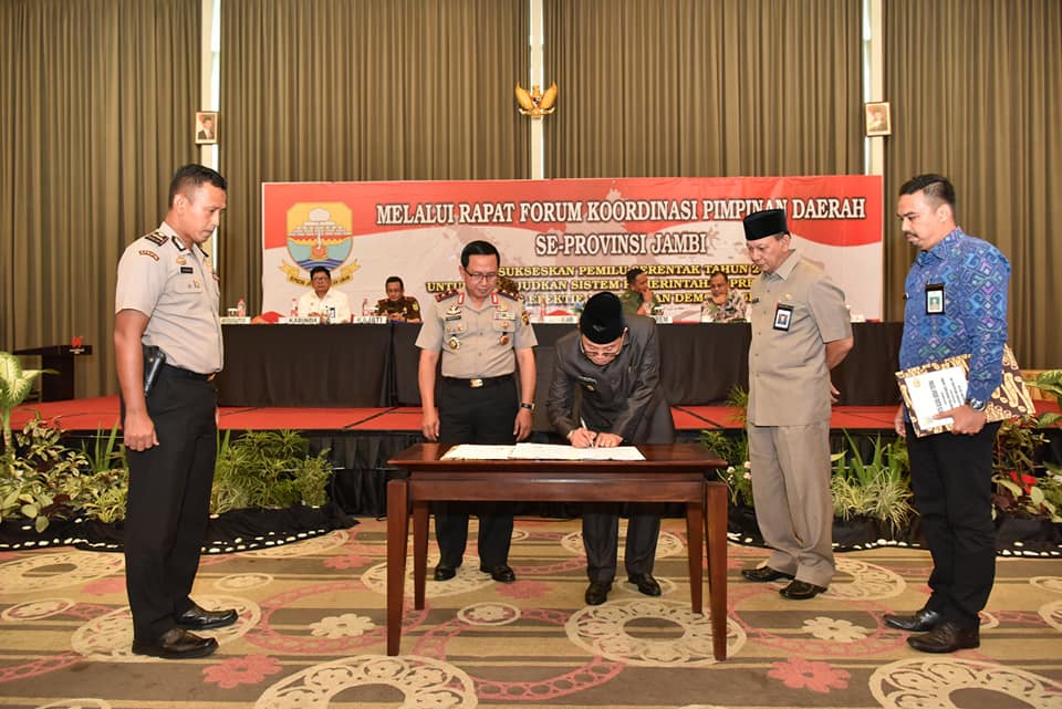 Pelaksana Tugas (Plt) Gubernur Jambi, Dr.Drs.H.Fachrori Umar,M.Hum mengemukakan, Forum Forkopimda harus memiliki sinergitas antara satu dengan yang lain, guna lebih meningkatkan kualitas demokrasi, terutama dalam menata pemilu yang lebih baik dan bermartabat di Indonesia, khususnya di Provinsi Jambi. Hal tersebut dikemukakan Fachrori saat memimpin.