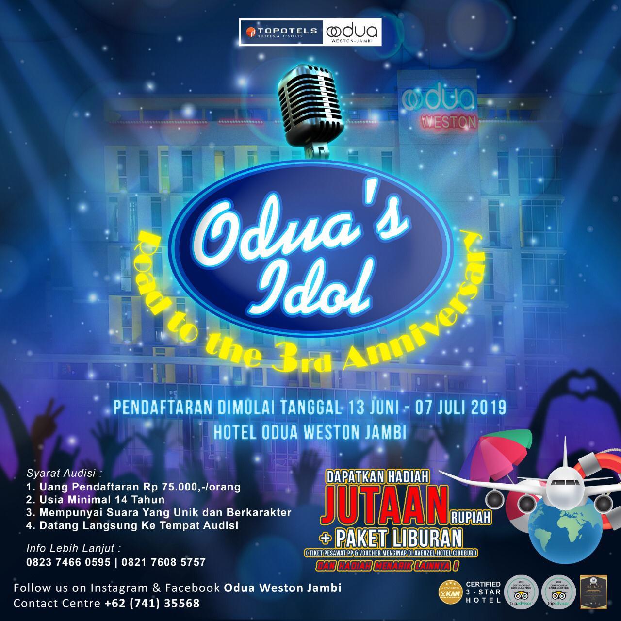 JAMBI (WARTANEWS.CO) – Bagi anda yang memiliki bakat menyanyi, Hotel Odua Weston mengadakan perlombaan talent search yang bertajuk “ODUA’S Idol”.