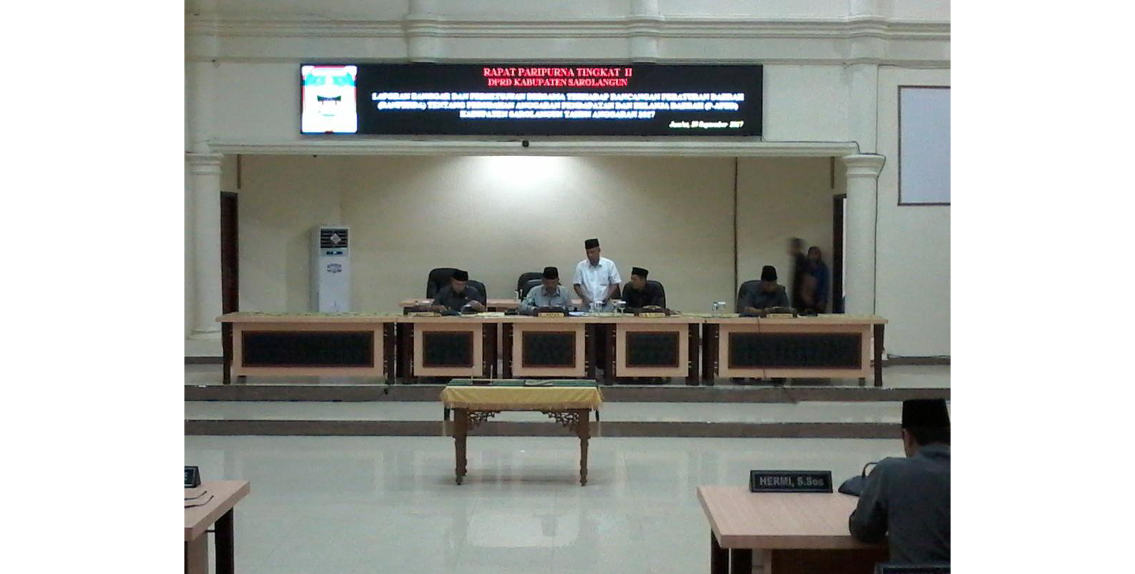 Pelaksanaan Rapat Pareipurna untuk membahas laporan badan anggaran dan persetujuan bersama terhadap Rancangan Peraturan Daerah (Ranperda) tentang Perubahan Anggaran Pendapatan Belanja Daerah (P-APBD) kabupaten Sarolangun tahun anggaran 2017.