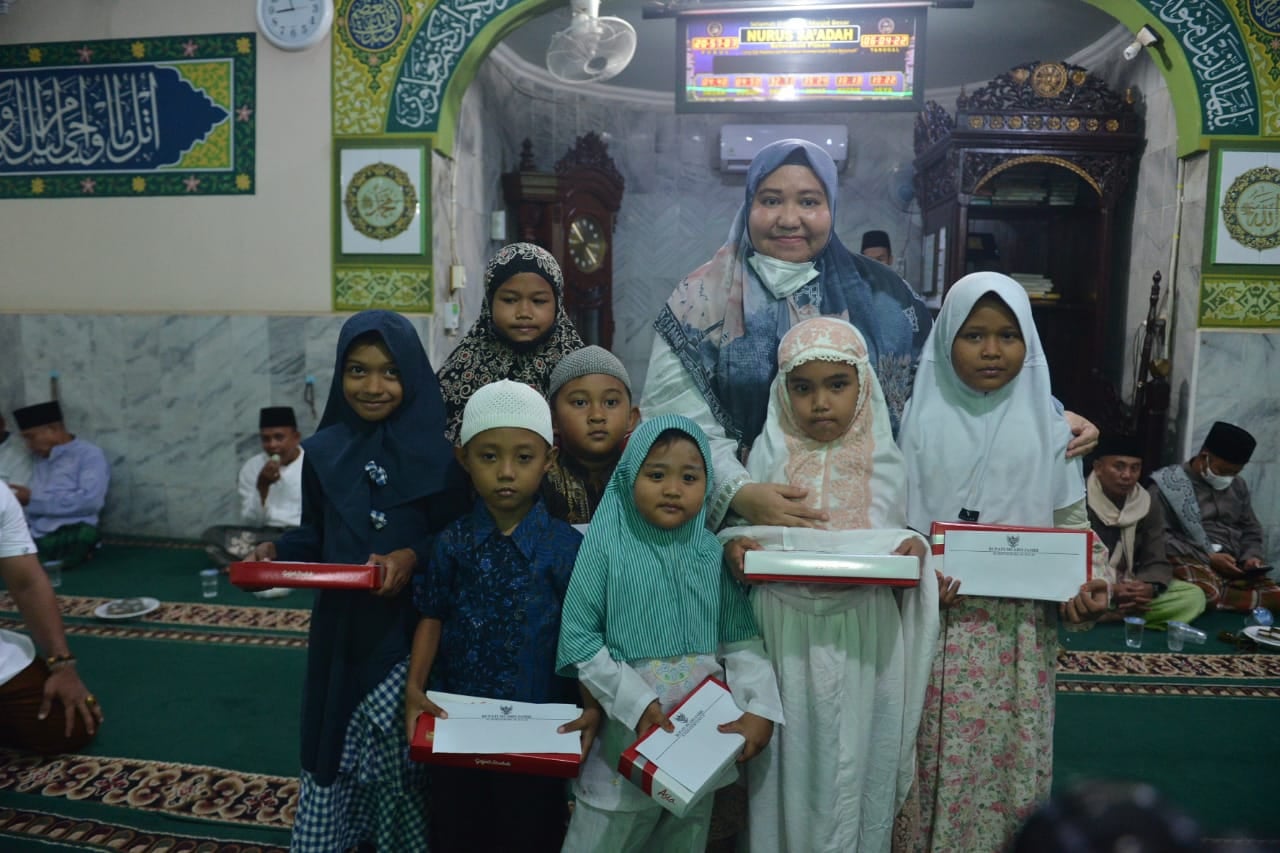 Usai sambutan, Bupati masnah, menyerahkan santunan anak yatim piatu dan serta bantuan untuk Masjid Nurussa’adah Kelurahan Pijoan. (*)