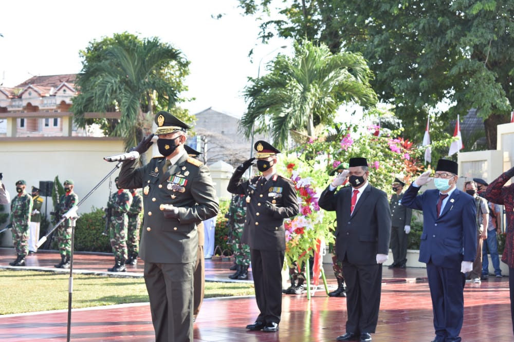 JAMBI (WARTANEWS.CO) – Dalam rangka memperingati Hari Ulang Tahun (HUT) ke-75 Tentara Nasional Indonesia (TNI), Danrem 042/Gapu, Brigjen TNI Zulkifli, S.IP, MM, memimpin langsung Upacara Ziarah Nasional yang berlokasi di Taman Makam Pahlawan (TMP) Satria Bhakti, Jalan Sudirman, Kelurahan Tambak Sari, Kecamatan Jambi Selatan, Kota Jambi. Selain itu, Danrem juga melakukan kegiatan tabur bunga di makam pahlawan, Jumat (02/10/2020).
