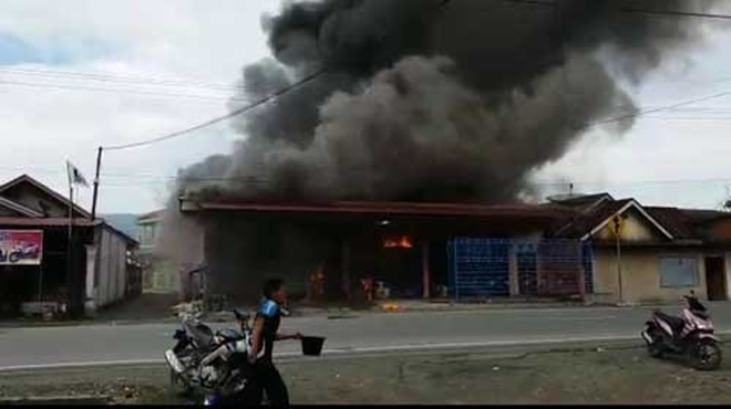 KERINCI (WARTANEWS.CO) – Sebuah Rumah Toko (Ruko) milik H.Zulfatman di Desa Pugu Raya Semurup, Kecamatan Air Hangat, Selasa pagi (13/3), pukul 09.00 WIB hangus dilalap si jago merah. Seluruh isi toko hangus dan tidak ada yang dapat diselamatkan.