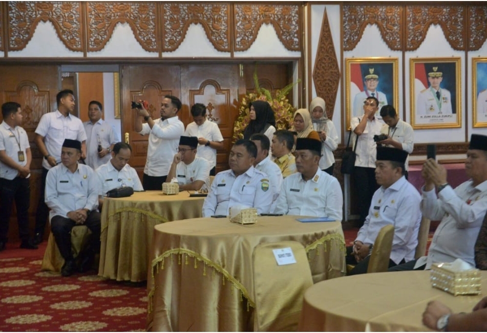 Gubernur Jambi Al Haris menyerahkan piagam penghargaan proper kepada perusahaan di Jambi yang berkontribusi dalam menjaga dan mengelola lingkungan secara efisien.