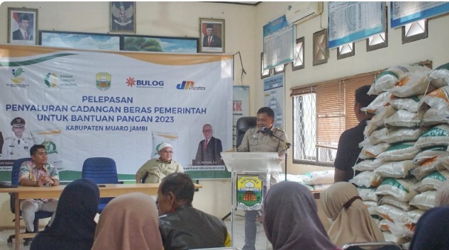 Penyaluran bantuan beras Cadangan pangan pemerintah ini merupakan bentuk kepedulian Pemerintah Muaro Jambi bekerjasama dengan Bulog Provinsi Jambi dimana bantuan yang akan diterima oleh masyarakat yaitu berupa beras sebanyak 155 ton beras yang dibagikan kepada masyarakat Keluarga Penerima Manfaat (PNM).