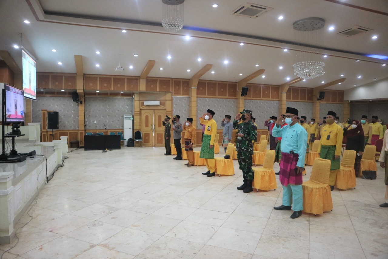 KUALA TUNGKAL (WARTANEWS.CO) – Sekretaris Daerah Tanjab Barat Ir. H. Agus Sanusi, M.Si menghadiri upacara peringatan hari lahir Pancasila secara virtual, bertempat di Balai Pertemuan Kantor Bupati Tanjab Barat, Selasa (01/6).