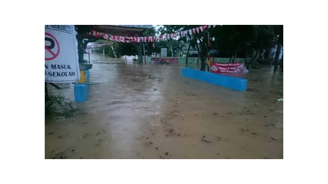BATAM – Akibat hujan deras mengguyur Kota Batam sejak kamis sore (17/08), SMP Negeri 28 Kota Batam tergenang setinggi 50 centimeter, sehingga semua ruangan dilantai I sekolah tergenang dan fasilitas sekolah banyak yang rusak.
