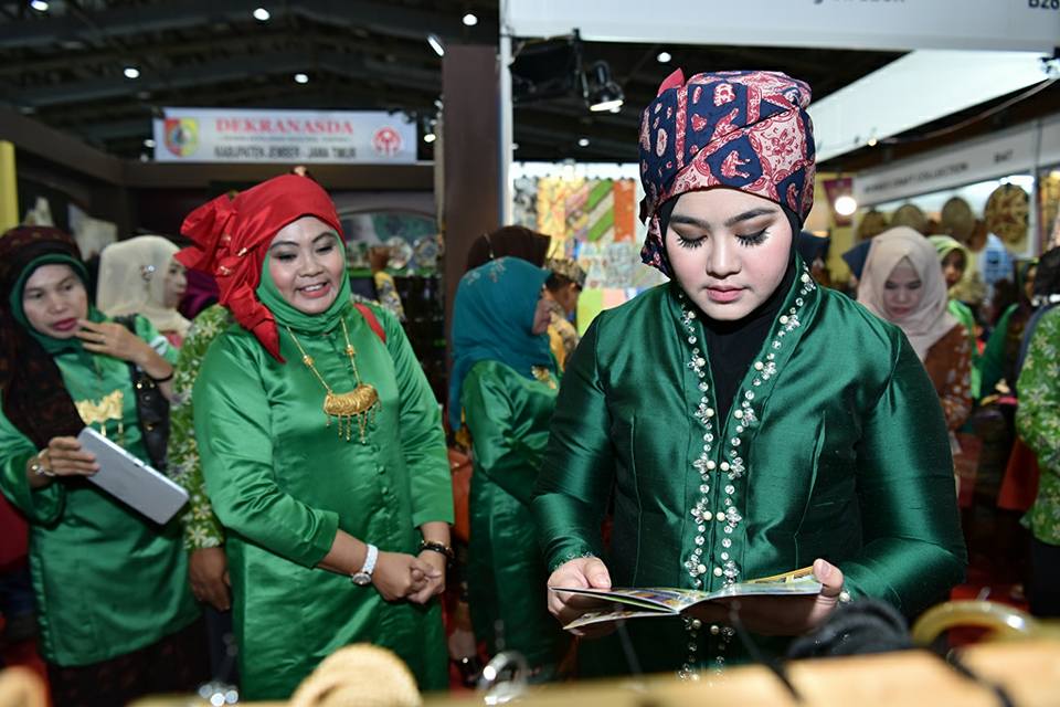 JAKARTA (WARTANEWS.CO) – Ketua Dewan Kerajinan Nasional Daerah (Dekranasda) Provinsi Jambi Hj.Sherrin Tharia Zola didampingi Wakil Ketua Harian Dekranasda Provinsi Jambi, Hj.Chairunnisa Erwan Malik beserta Ketua Dekranasda Kabupaten/Kota Se Provinsi Jambi menghadiri Pameran Kriyanusa Tahun 2017, bertempat di Hall A-B Jakarta Convention Center, Senayan Jakarta Pusat, Rabu (27/09/2017) pagi.