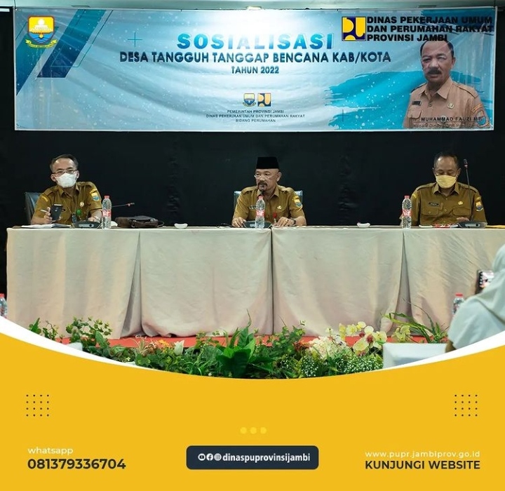 Jambi (WARTANEWS.CO) – Bertempat di Hotel Odua Weston Jambi, Dinas PUPR Provinsi Jambi adakan kegiatan Sosialisasi Desa Tangguh Tanggap Bencana tahun anggaran 2022.