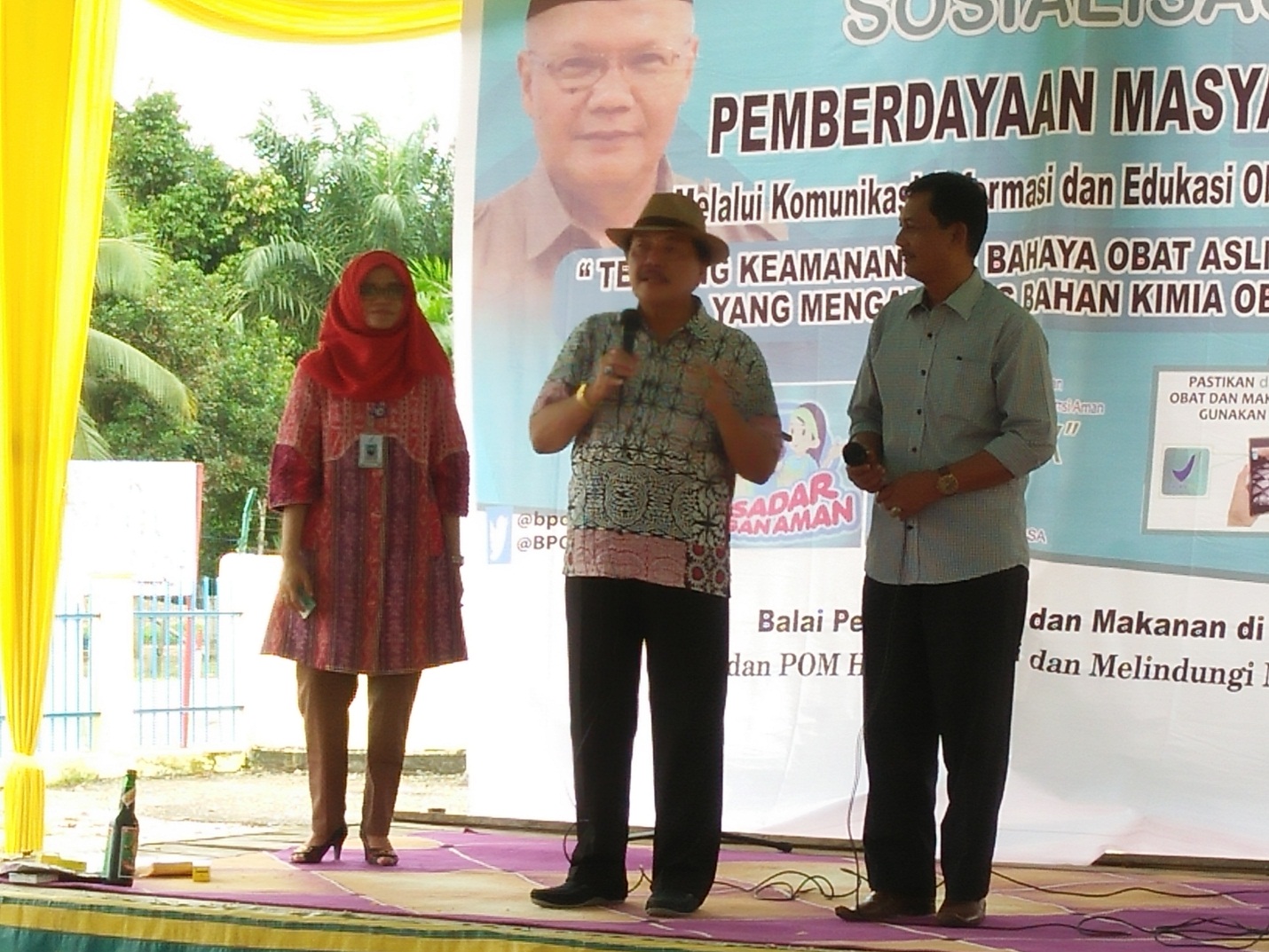 TEBO – Badan Pengawas Obat dan Makanan (BPOM) Provinsi Jambi melakukan sosialisasi Pemberdayaan Masyarakat melalui Komunikasi Informasi dan Edukasi (KEI) terhadap keamanan produk obat dan makanan, Sabtu (15/07) di lapangan depan kantor Camat VII Koto, Kabupaten Tebo.