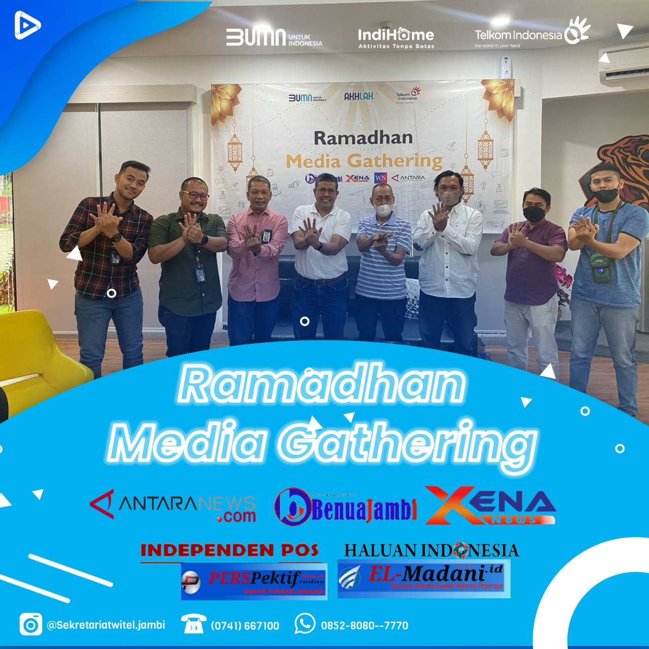 Sebagai mitra Telkom, pada kesempatan ini ada beberapa media diantaranya Benuajambi, Antara, Xenanews, NW, HaluanIndonesia, Independen pos, Wartanews.co, perspektiftoday dan Elmadani.
